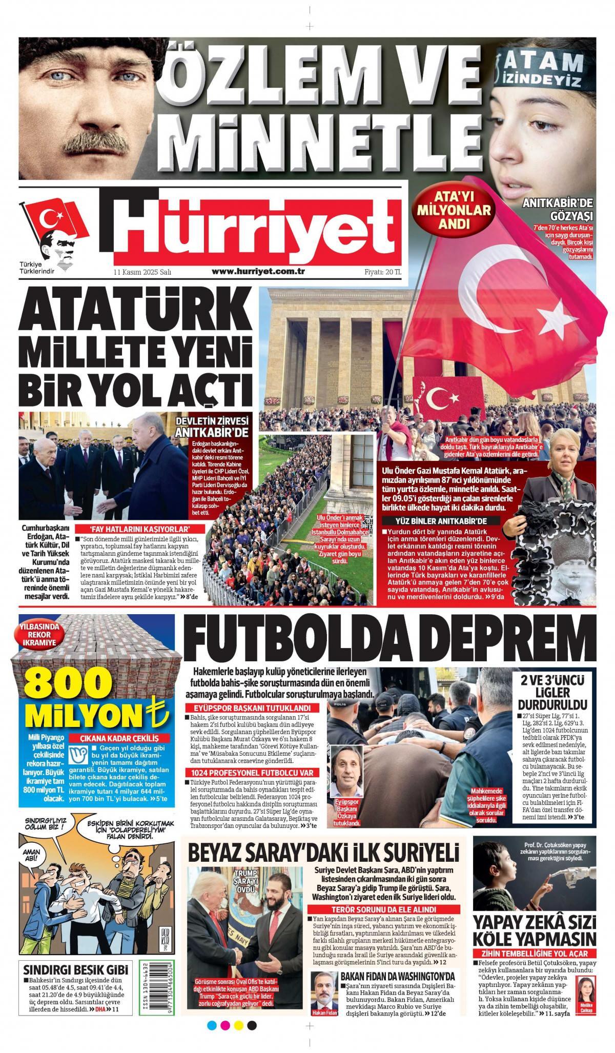 Hürriyet Gazetesi 11 Kasım 2025 Günü Manşeti