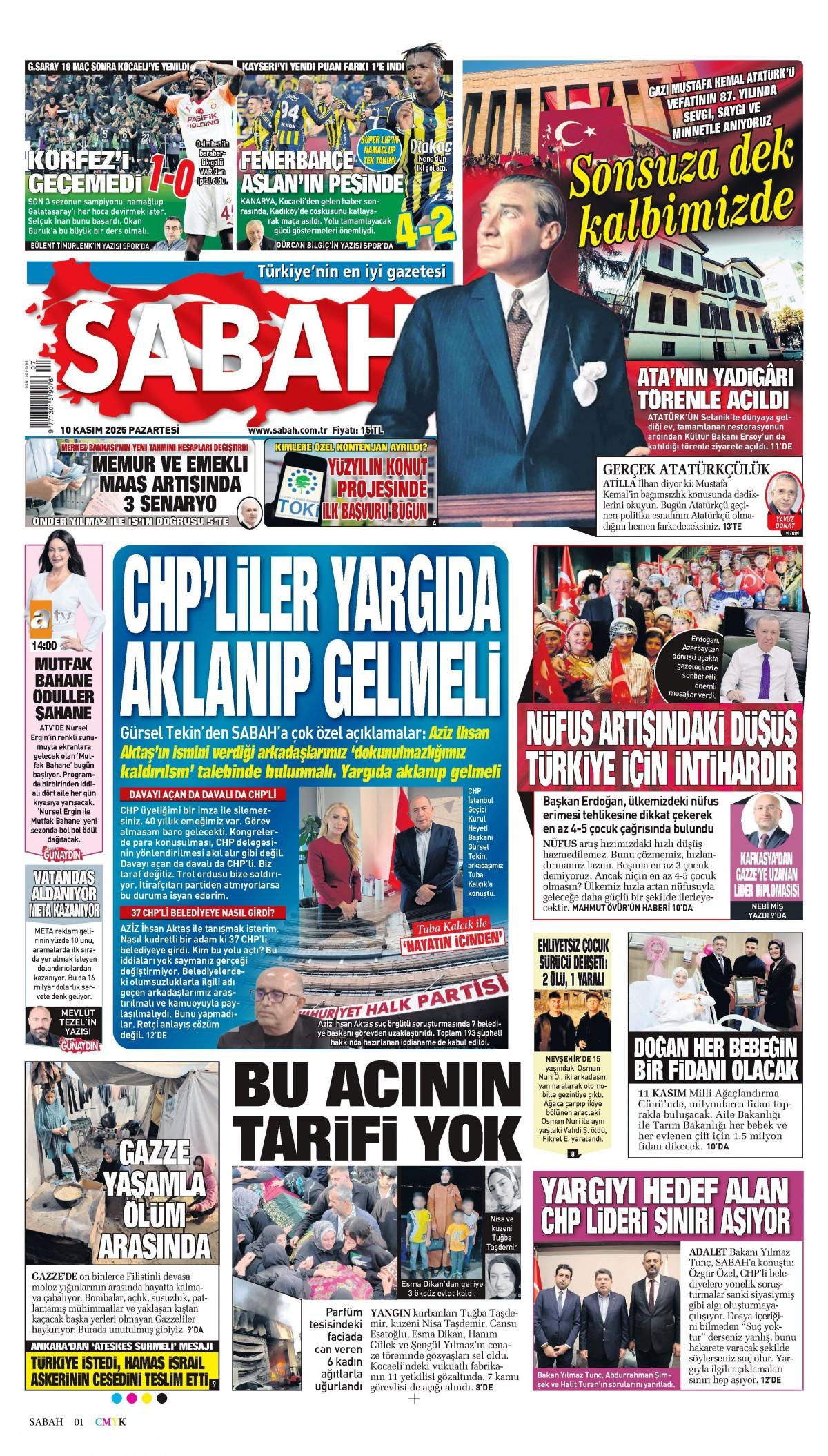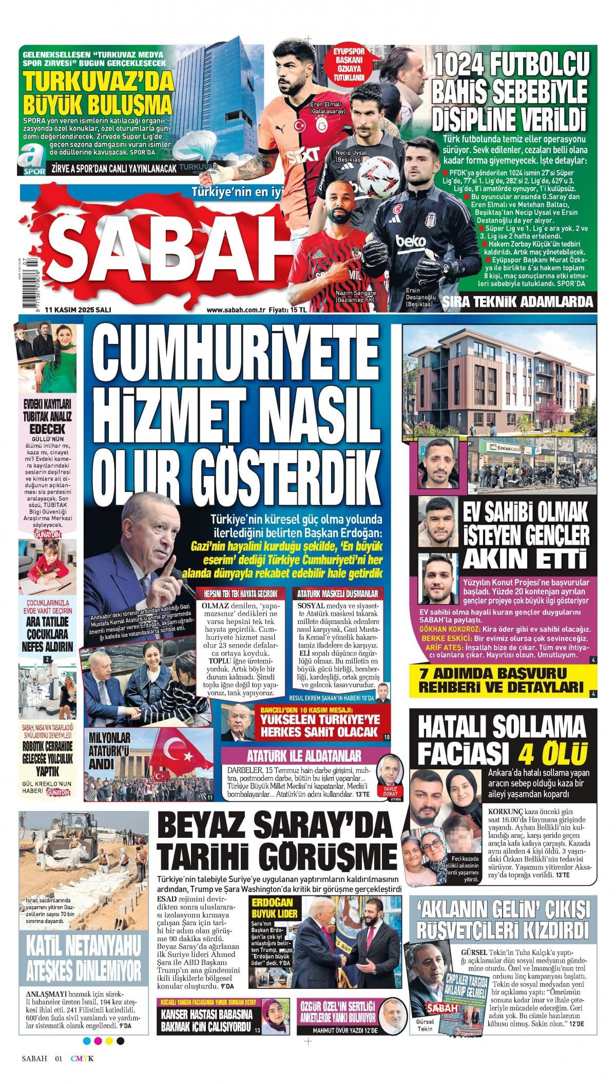 Sabah Gazetesi 11 Kasım 2025 Günü Manşeti