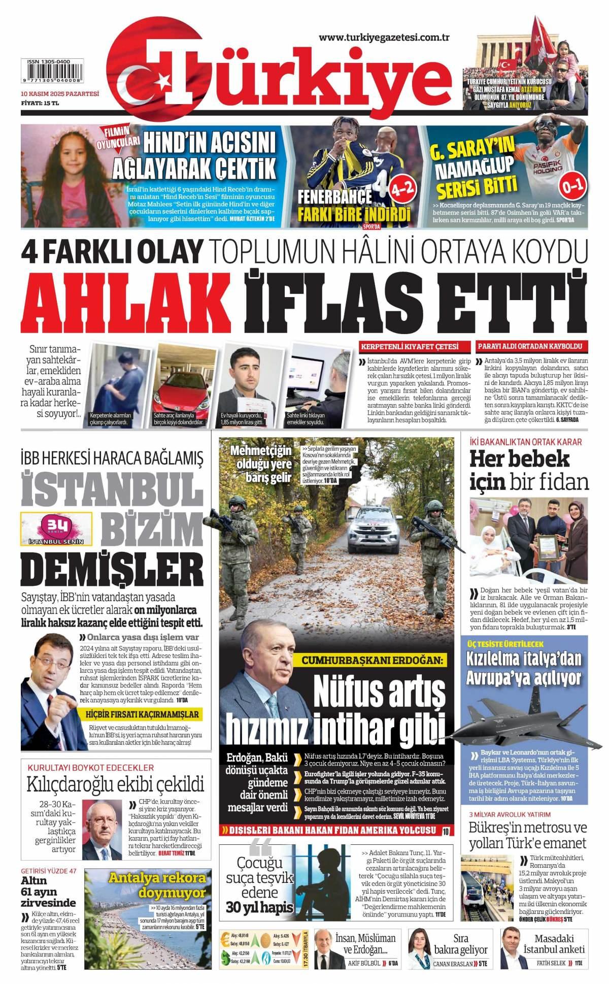 Türkiye Gazetesi 11 Kasım 2025 Günü Manşeti